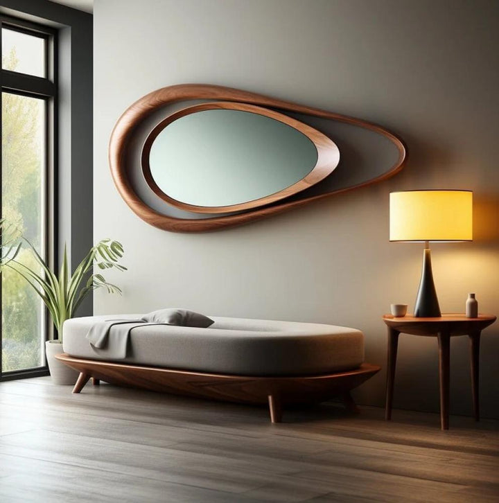 ارفع من مستوى ديكور منزلك مع هذه المرأة الفنية التي تتجاوز حدود التصميم التقليدي. إطارها المزدوج من الخشب الطبيعي يمنحها شكلًا فريدًا ومميزًا، مما يجعلها قطعة فنية ومركز اهتمام في أي غرفة. إنها ليست مجرد مرأة لتعكس صورتك، بل هي تحفة فنية تمنحك إحساسًا بالأناقة والرقي. اجعلها قطعة مركزية في غرفة معيشتك أو مدخلك لتضيف لمسة من الفن المعاصر