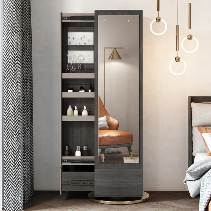 تتميز خزانة متعددة الوظائف مع مرايا هذه بتصميمها المودرن الجذاب والعصري، وتتوفر باللون الاسود لتناسب أي ديكور داخلي، . تتميز الخزانة بمقاس كبير ومناسب لتخزين العديد من اغراض المكياج او الملابس ، حيث يبلغ عرضها 60 سم وارتفاعها 180 سم . تتميز الخزانة بخامتها الرائعة والمصممة من خشب ام دي اف الذي يجعلها متينة وتدوم لفترة طويلة، كما يتميز التصميم بالعديد من الأرفف الداخلية التي تمكنك من تنظيم وترتيب الملابس او المكياج بسهولة. هذه الخزانة هي الخيار المثالي لأولئك الذين يبحثون عن خزانة متعددة الوظائف حديثة وعملية في نفس الوقت.