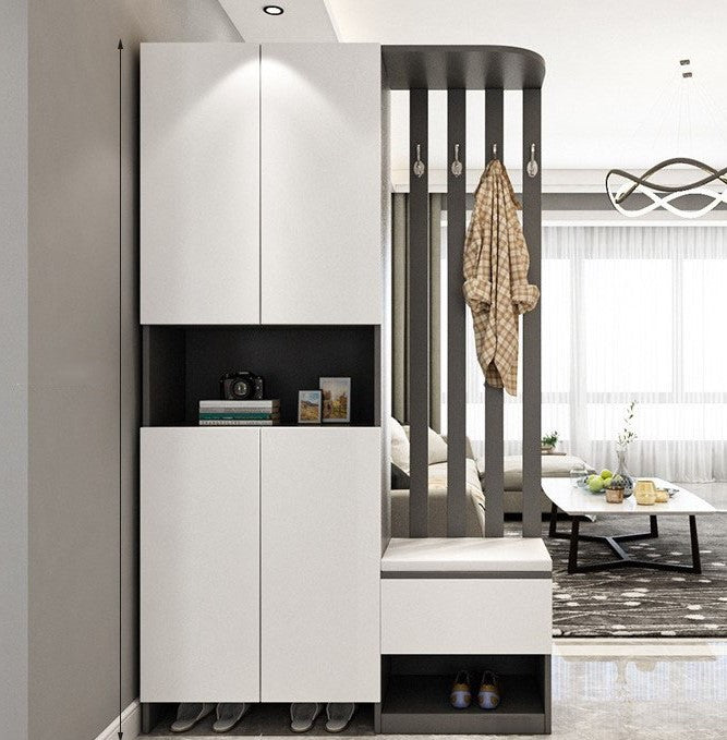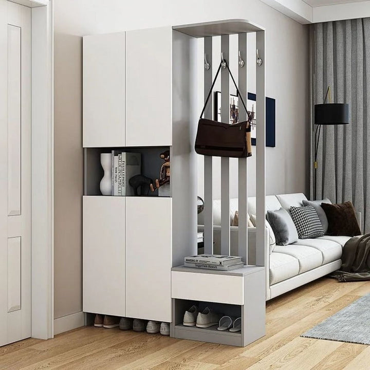يتميز الحاجز الجداري بالعديد من الاستخدامات، فهو حاجز جداري مع خزانة للأحذية بشكل مودرن وأيضًا خزانة توفر لك المساحة لتخزين الأشياء. ويتميز هذا الحاجز بتصميمه الذكي الذي يسمح بتثبيته بسهولة في مواقع متعددة، ومصنوع من خشب عالي الجودة الذي يجمع بين المتانة والمقاومة.