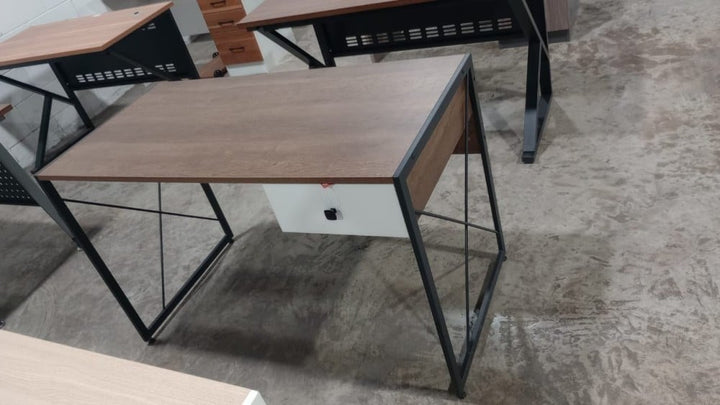يتميز هذا المكتب المقدم من متجر رهييب بتصميمه الفاخر و البسيط فى نفس الوقت . كما أنه تم تصنيعه من منتجات عاليه الجوده منها الخشب و المعدن مما يوفر القوه و المتانه للمكتب و يجعله أكثر ثباتاً و استقراراً . كما انا متوفر بلونين مميزين يتناسبوا مع أثاث منزلك و هما الخشبى الفاتح مع الابيض او الخشبى الغامق مع الاسود كما انا يأتى بمقاس مناسب لوضعه بغرفة المكتب بمنزلك حيث يبلغ عرضه 120 سم و ارتفاع 75 سم و عمق 60 سم .