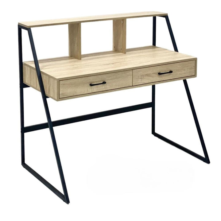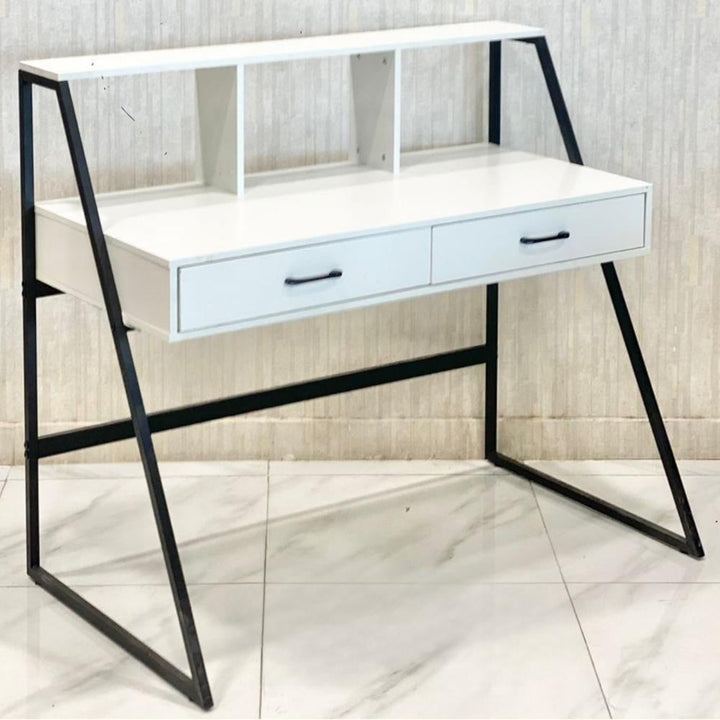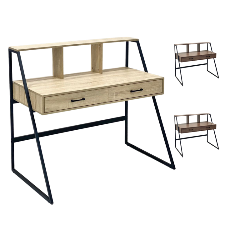 مكتب عمل ودراسة مصنوع من الميلامين المقاوم للخدش والمميز بسهولة تنظيفه باستخدام قطعة قماشية مبللة فقط، مزود بحامل معدني من الحديد المقاوم للاهتراء والكسر، يتميز هذا المكتب بدرجين لتخزين الأوراق والأغراض الشخصية كما أنه مزود بفواصل في الجهة الأمامية توفر سهول تثبيت الكتب والدفاتر عليها ليكون مكتب مثالي للدراسة.
