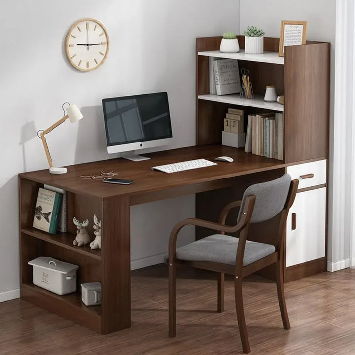 مكتب خشبي للعمل والدراسة مع خزانة جانبية . المكتب مصنوع من الخشب عالى الجودة .يأتي مع خزانة تحتوي على مكتبة وأرفف متعددة ودرج لمزيد من مساحات التخزين . يمكنك طلب المكتب باللون والإتجاه المناسب لديكور غرفتك . و متوفر ب الوان ( خشبي فاتح - خشبي داكن ) و مقاس ( العمق 60 سم * الارتفاع 135 سم * العرض 140 سم )