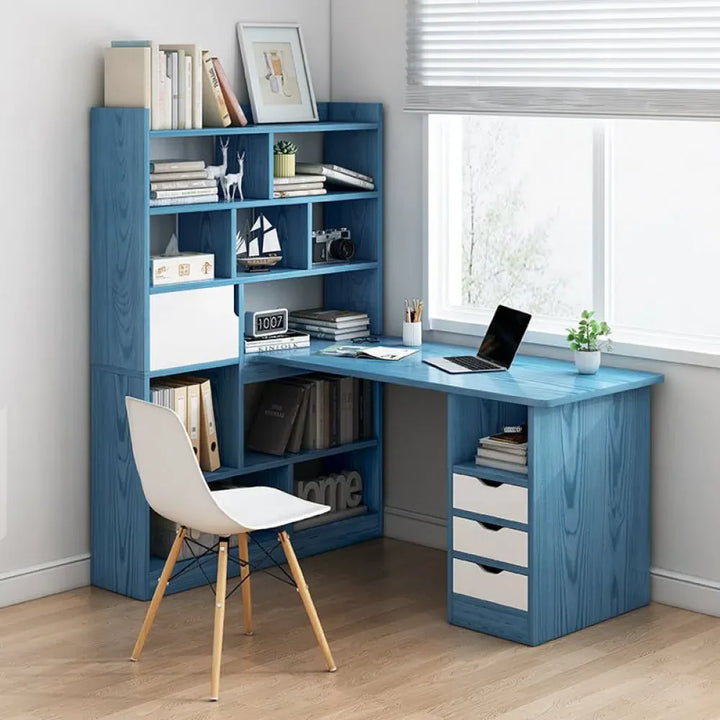 مكتب خشبي مع مكتبة للعمل والدراسة