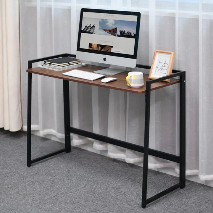 مكتب عصري قابل للطي سطح المكتب من خشب MDF عالي المتانة مع هيكل وفواصل معدنية .مناسب في الأماكن الضيقة فهو قابل للطي لسهولة تخزينه ونقله . سهل التنظيف ومقاوم لدرجات الحرارة العالية .و متاح ب اللون ( خشبي * اسود _ خشبي * ابيض _ اسود )