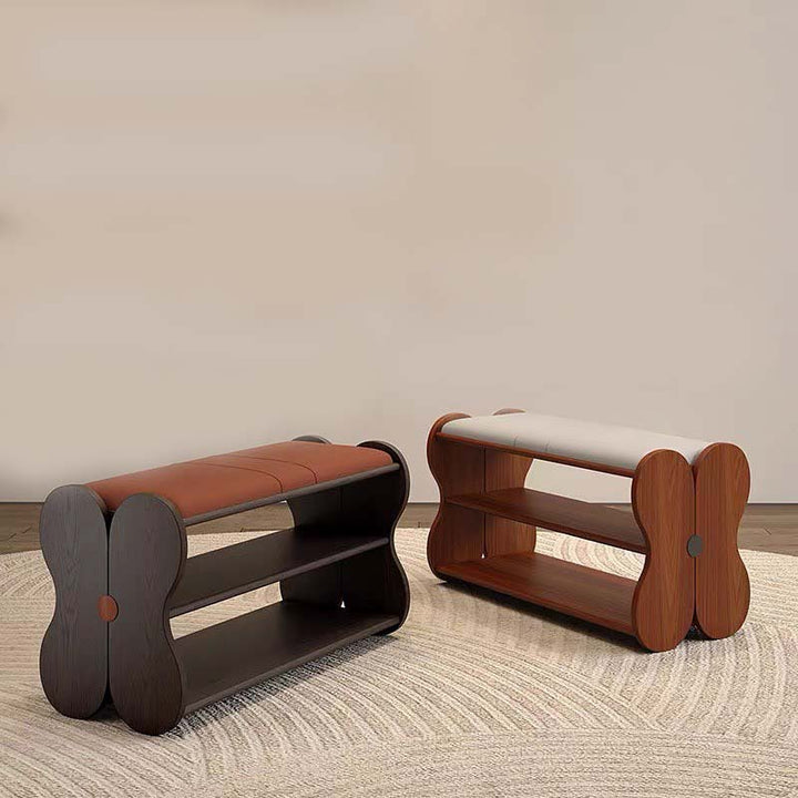 قطع فريدة بتصميم استثنائي تُضفي لمسة من الفن والوظيفة على أي مساحة. هذه المقاعد الأنيقة تتميز بإطارات خشبية منحنية بلمسة عصرية، مع مقعد مبطن يضمن راحة الجلوس. تصميم ذكي يجمع بين الأناقة والتخزين العملي، حيث تحتوي على رفّين مثاليين لتنظيم الأحذية،