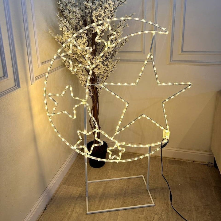 استاند هلال رمضان بقاعده معدنيه تجعله أكثر ثباتاً . أجعل فى منزلك المزيد من لحظات البهجه و السرور بتزيين منزلك قبل رمضان و أحصل على هذا الهلال الرائع كما أنه يبلغ من الارتفاع 100 سم . حتى يمكنك وضعه بأى غرفه بالمنزل سواء كانت غرفة المعيشه او النوم او حتى غرفة الطعام .
