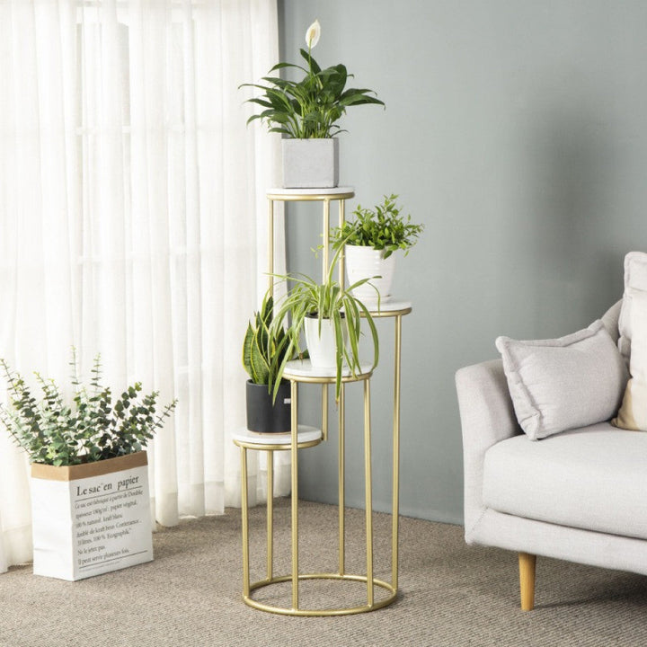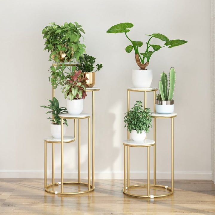 حامل زهور من المعدن المتين المقاوم للصدأ الذي يتحمل معك لسنين طويله مع سطح صخري متين يمكنك وضعه في غرفه معيشتك او شرفه منزلك و متوفر ب اللون الذهبي و الاسود و مقاسات ( الأرتفاع 80 / 110 سم * العرض 40 سم )